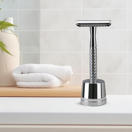 Safety Razor Stand, Safety Razor Holder (Bright Silver)