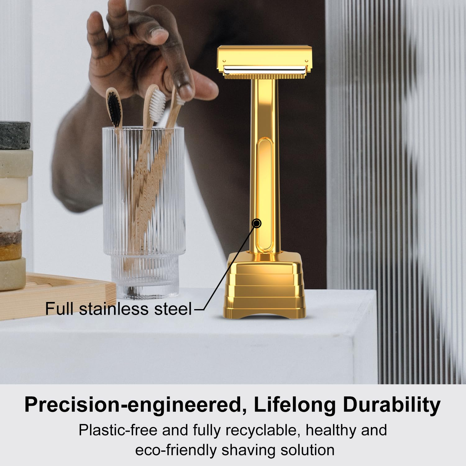 - Eco-Friendly and Cost-Efficient Shaving Solution: Embrace sustainability with our reusable safety razor — just replace the blades as needed. Compatible with any standard single- or double-edge blades, it offers long-term savings and a greener choice. Join a movement toward a cleaner planet while enjoying premium shaving