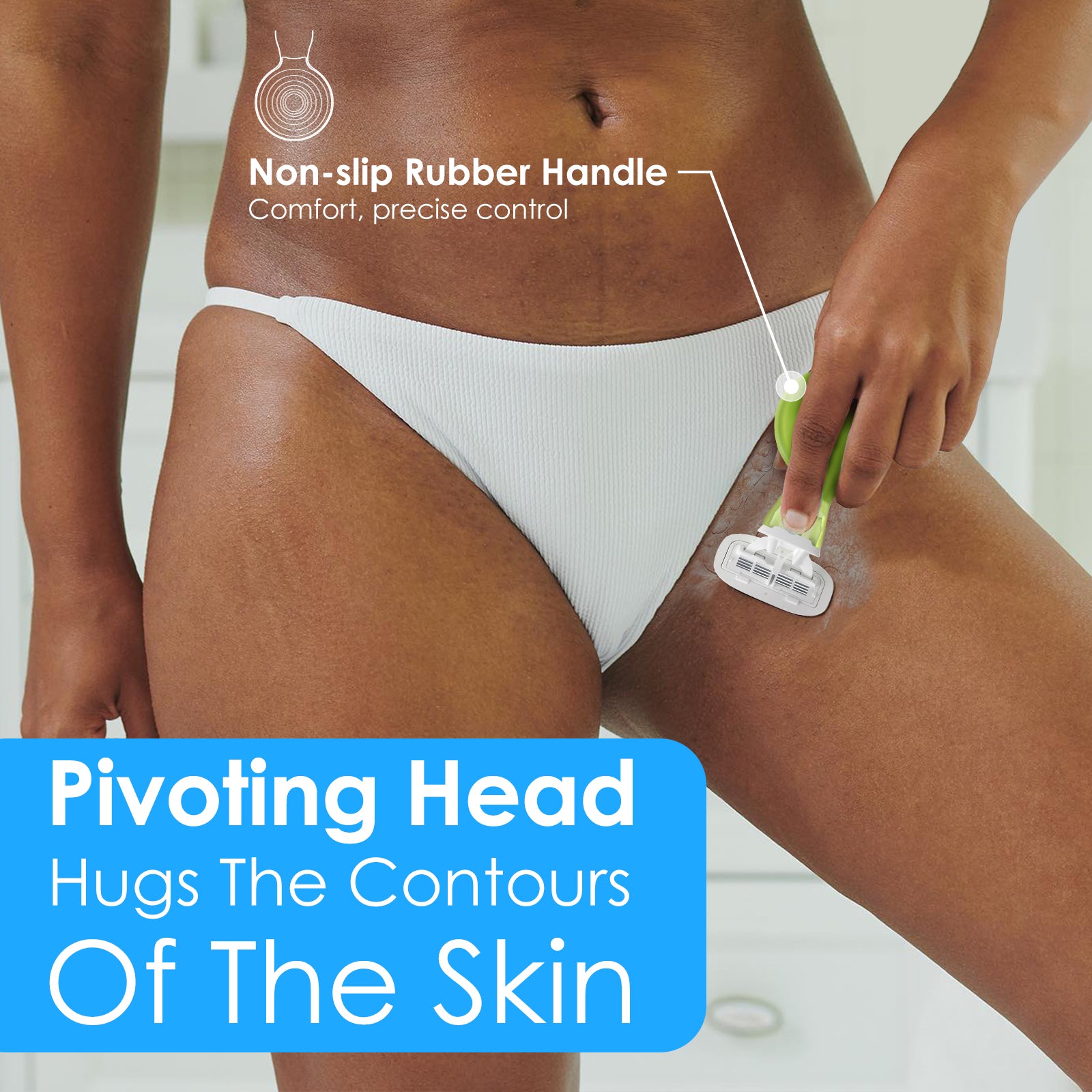 - Enjoy Your Shaving Time: The THURLADY 5-blade travel razors for women has a pivoting head that hugs the contours of your body, such as your legs, knees and ankles, to provide an ultra-close shave. Say goodbye to nicks, bumps and razor burn! It's ideal for sensitive skin. Achieve silky-smooth skin now